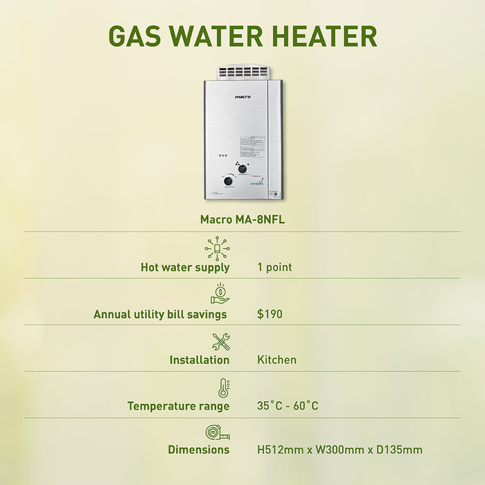 Free delivery and New installation including extension of gas pipe from cooking point to heater position within kitchen/service balcony, excluding plumbing services - worth $228.90 (inclusive GST)