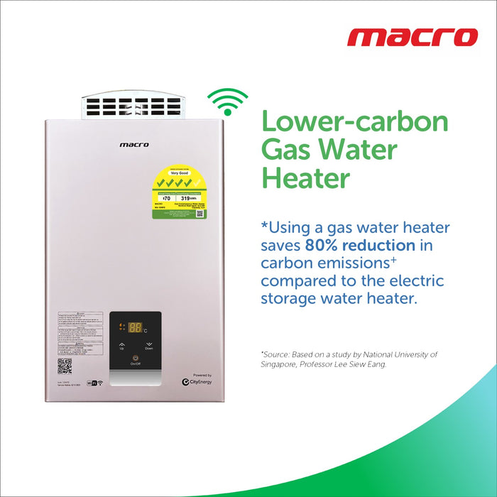 Carbon Emissions Savings: Using a gas water heater saves an approximately 80% reduction in carbon emissions* compared to the electric storage water heater.