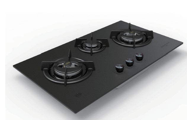 L903G 90cm 3 burner Matte Black Glass Hob