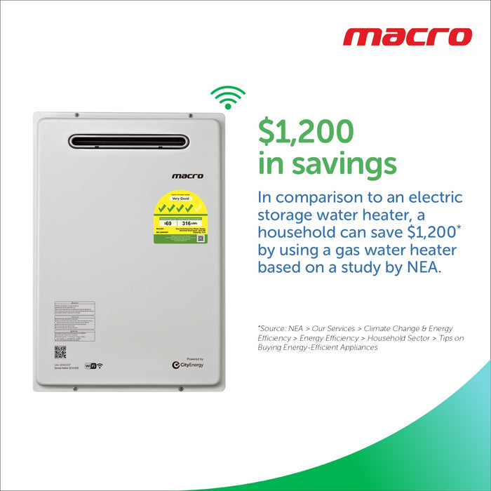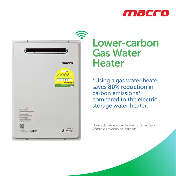 Carbon Emissions Savings: Using a gas water heater saves an approximately 80% reduction in carbon emissions* compared to the electric storage water heater.